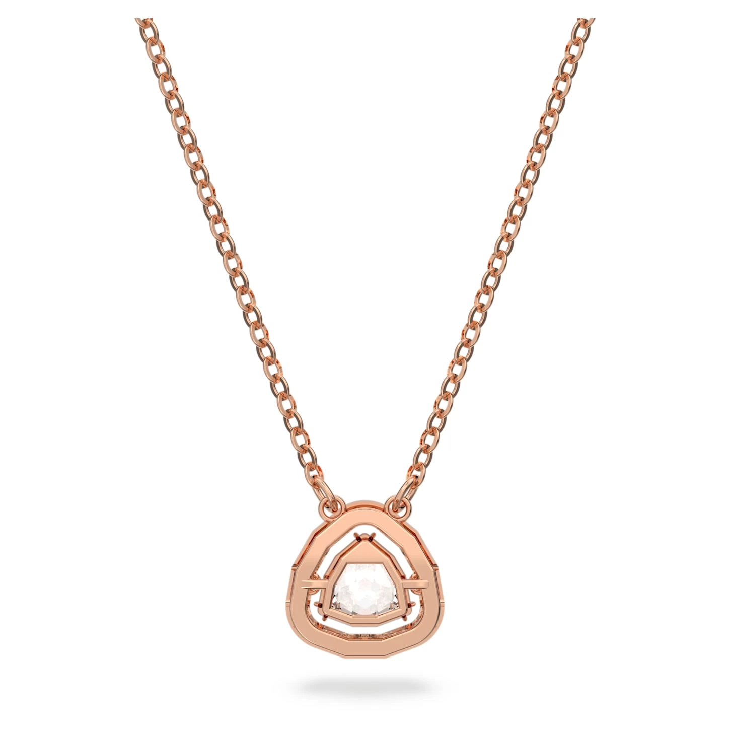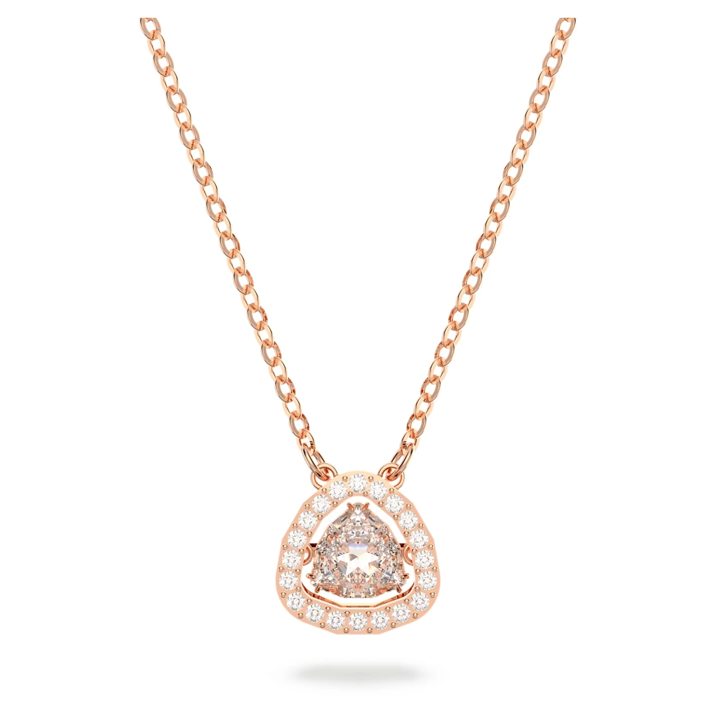 This timeless necklace will work wonders with your everyday wardrobe. Suspended on a rose gold-tone plated chain, it features a beautiful, trilliant-cut stone as the centerpiece, which is framed by dazzling pavé. A wear-forever piece – ideal for self-gifting or treating a loved one.