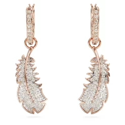Swarovski Nice Drop Earrings Feather, White, Rose Gold-tone Plated