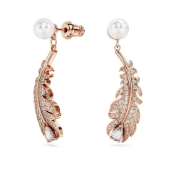 Swarovski Nice Drop Earrings Mixed Cuts, Feather, White, Rose Gold-tone Plated