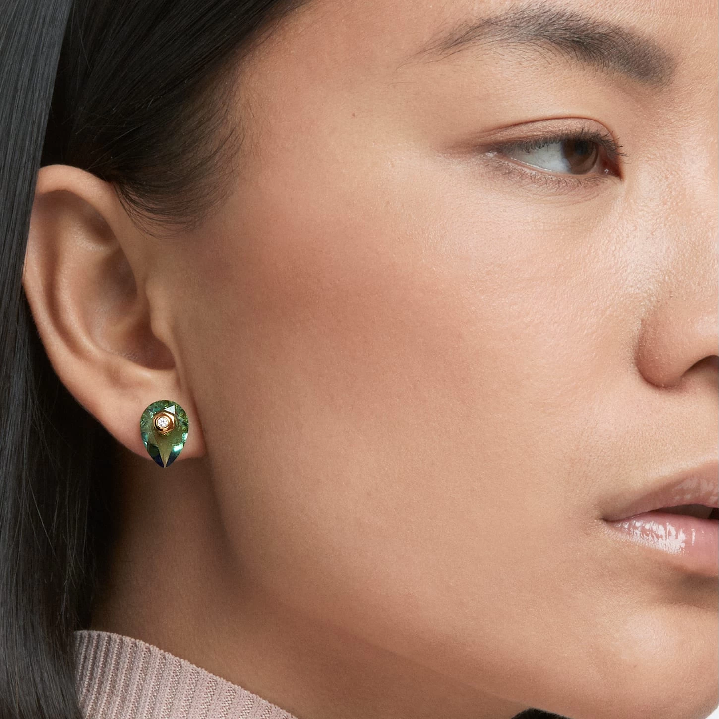 Swarovski Numina Stud Earrings Asymmetrical Design, Mixed Cuts, Green, Gold-tone Plated