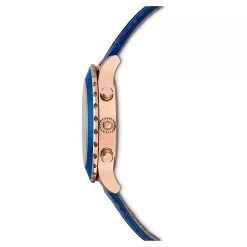 Swarovski Octea Lux Chrono Watch Swiss Made, Leather Strap, Blue, Rose Gold-tone Finish