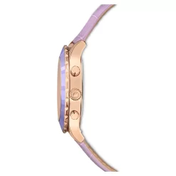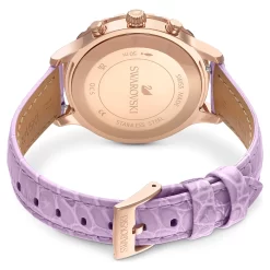 Swarovski Octea Lux Chrono Watch Swiss Made, Leather Strap, Purple, Rose Gold-tone Finish