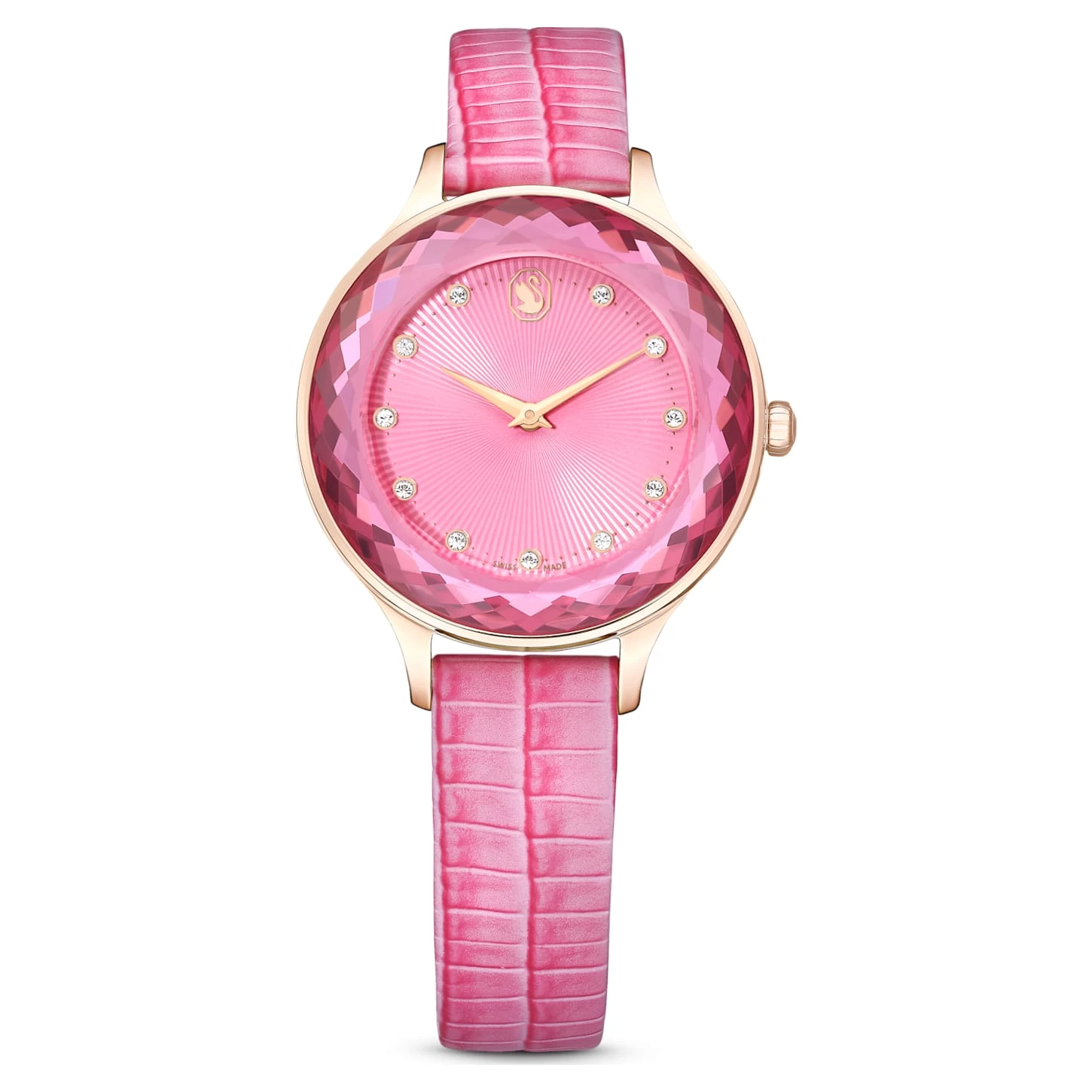 Swarovski Octea Nova Watch Swiss Made, Leather Strap, Pink, Rose Gold-tone Finish