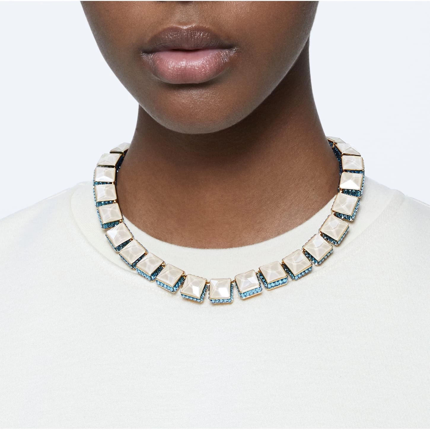 Swarovski Orbita Necklace Magnetic Closure, Square Cut, Multicolored, Rhodium Plated