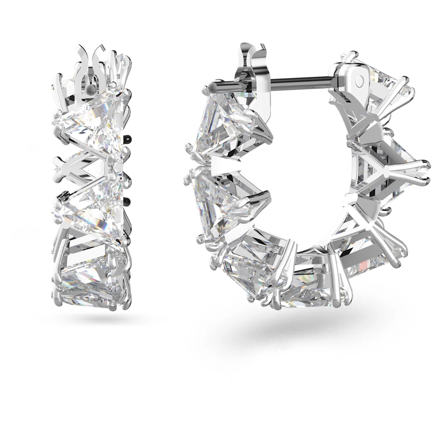 Swarovski Ortyx Hoop Earrings Triangle Cut, Small, White, Rhodium Plated