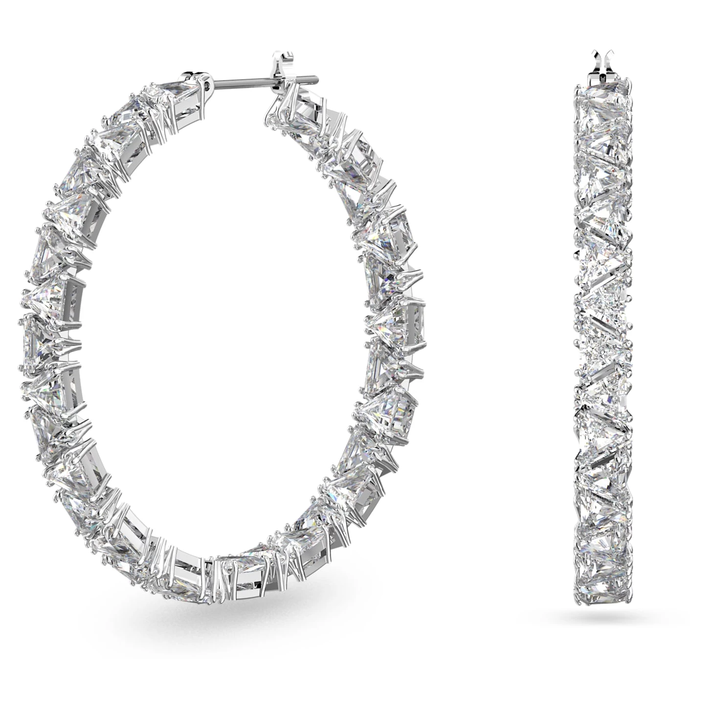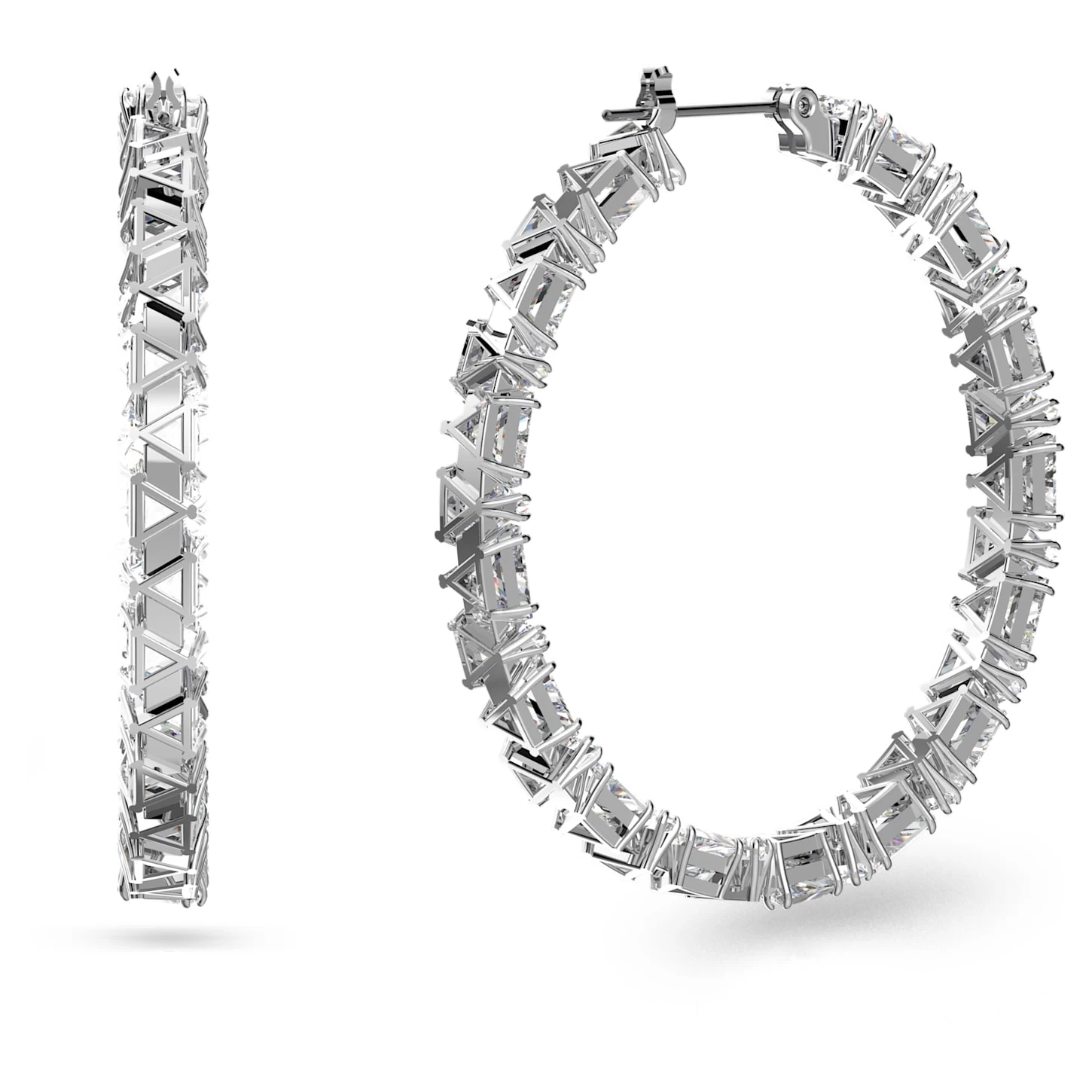 Swarovski Ortyx Hoop Earrings Triangle Cut, White, Rhodium Plated