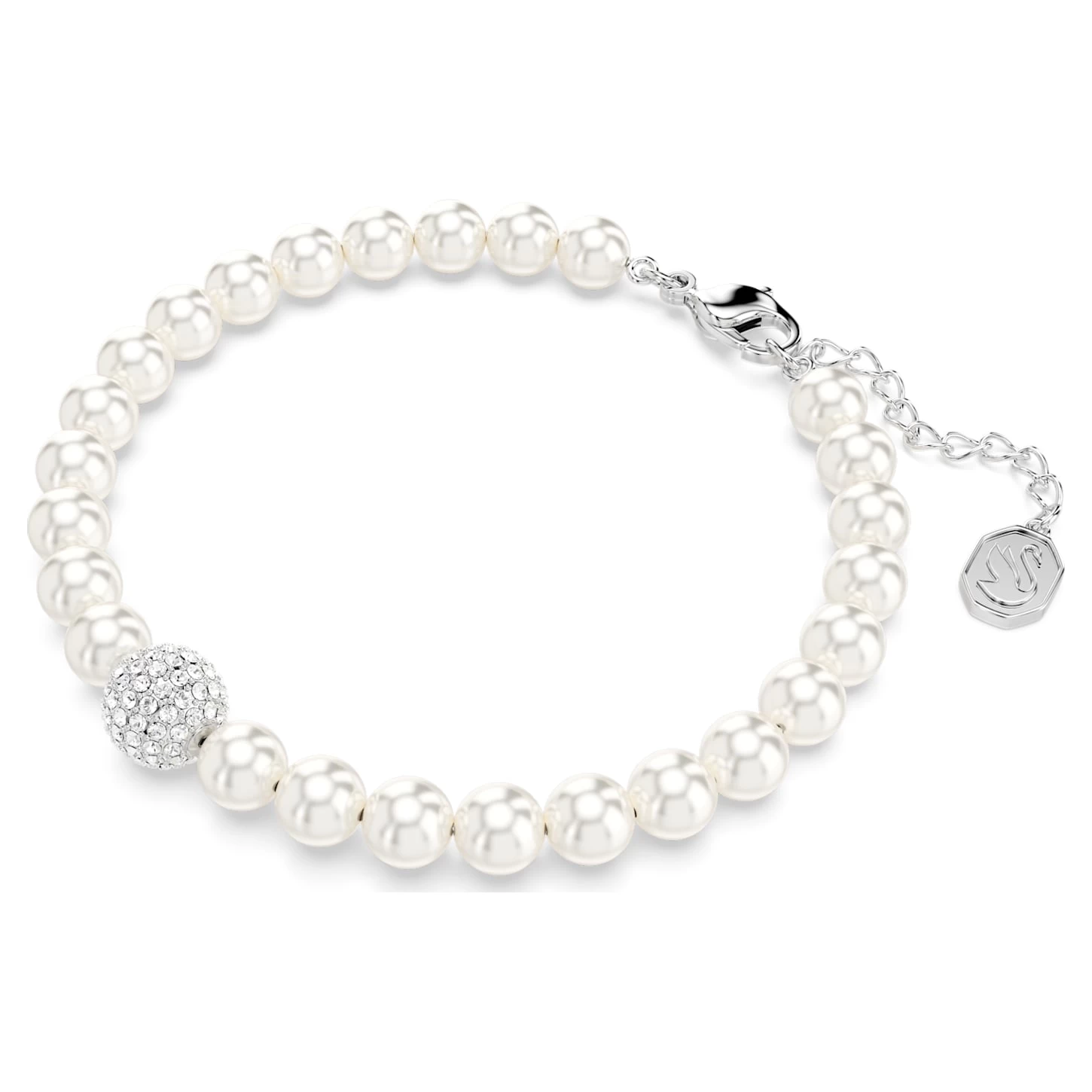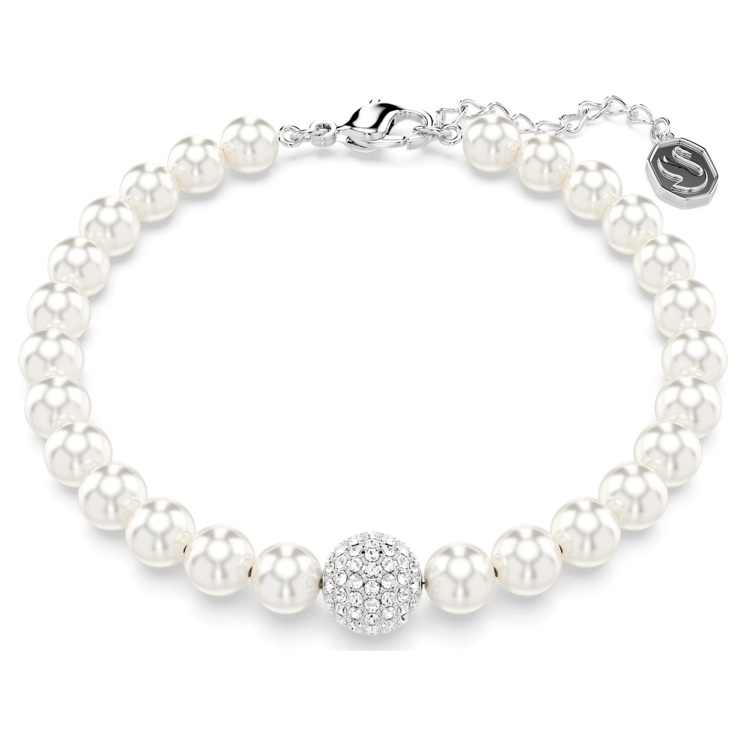 Choose everyday joy with this Swarovski Remix strand. This timeless piece drips with Swarovski Crystal Pearls and a shimmering pavé-set sphere set on rhodium plating. The bracelet is finished with a lobster closure and elongation for the perfect fit. An essential for your jewelry collection, or an inspired gift idea.