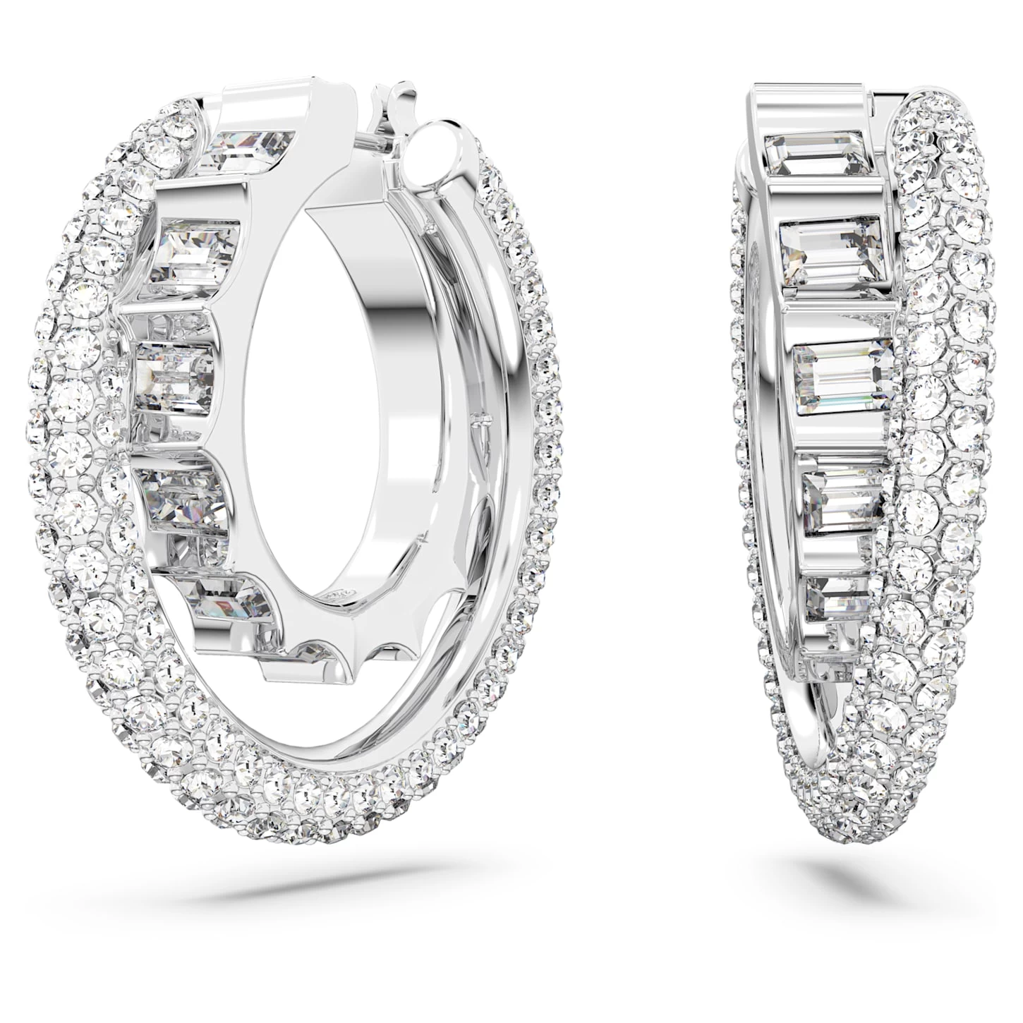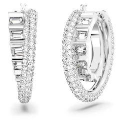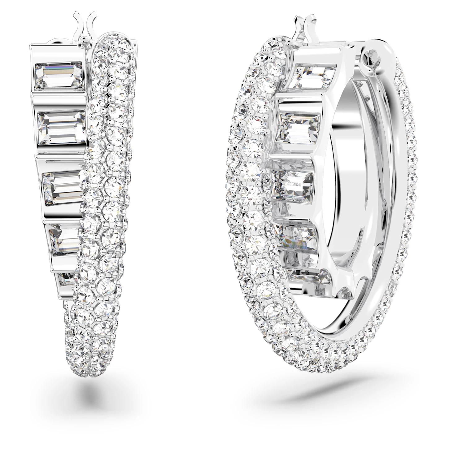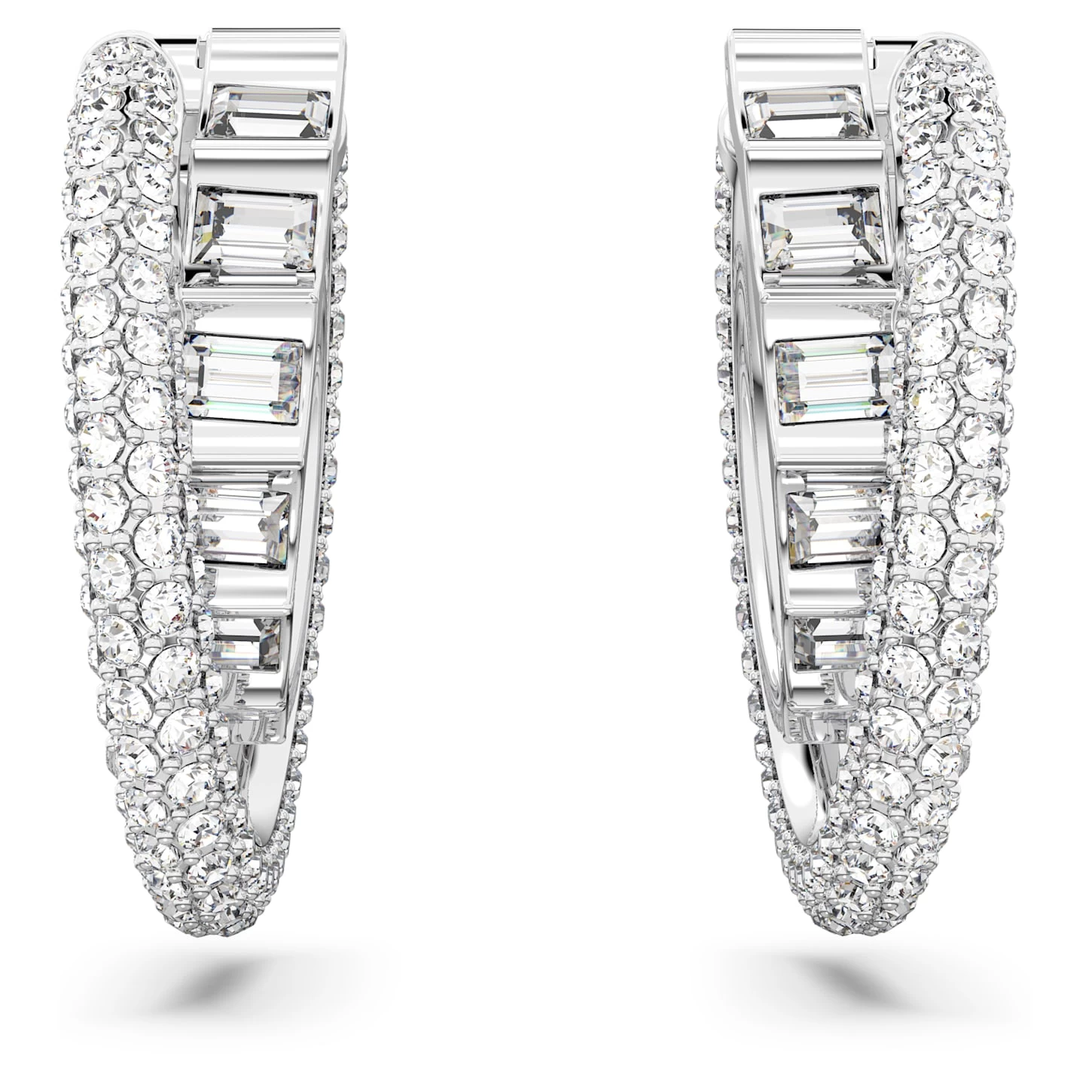 Swarovski Rota Hoop Earrings Mixed Cuts, White, Rhodium Plated