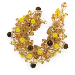 Formed from clusters of warm toned crystals and lustrous spheres of tiger eye, this bracelet takes inspiration from bohemian bead work. Designed to move with the body for a showstopping effect, this bracelet can be worn alone with minimalist silhouttes to really make it pop, or paired with statement pieces from your wardrobe for a look that is totally unique. This bracelet is part of the Somnia family, designed by Creative Director Giovanna Engelbert for Collection I.