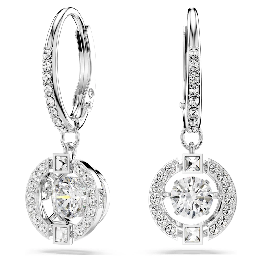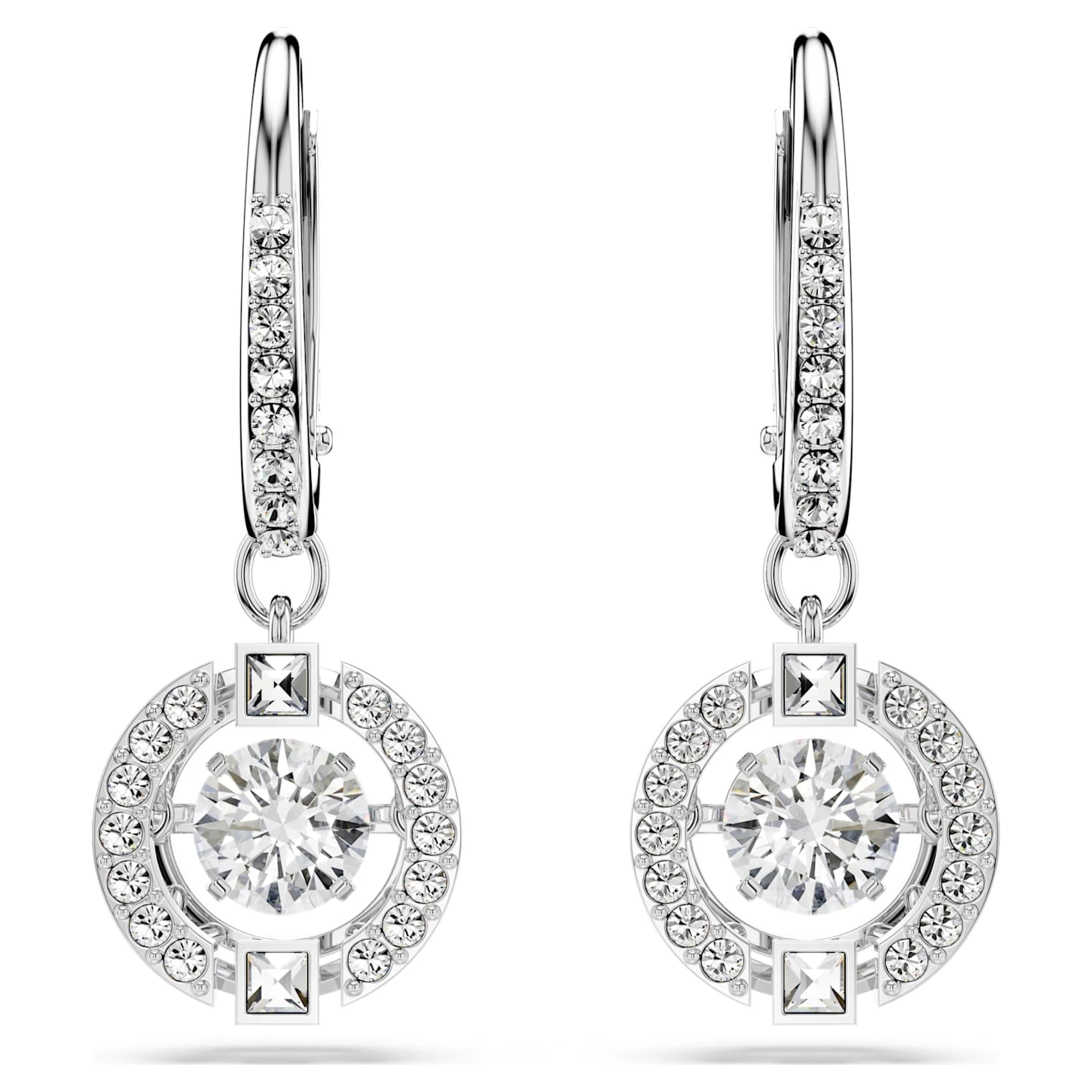 Swarovski Sparkling Dance Drop Earrings Round Cut, White, Rhodium Plated
