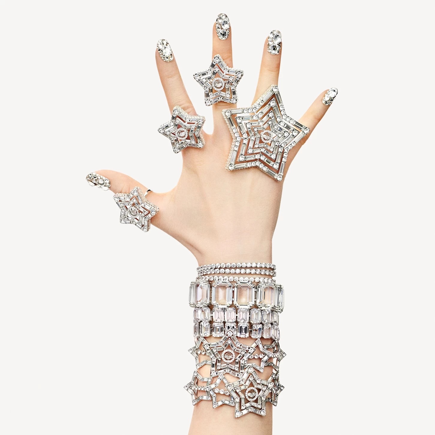 Swarovski Stella Bracelet Mixed Cuts, Star, Large, White, Rhodium Plated