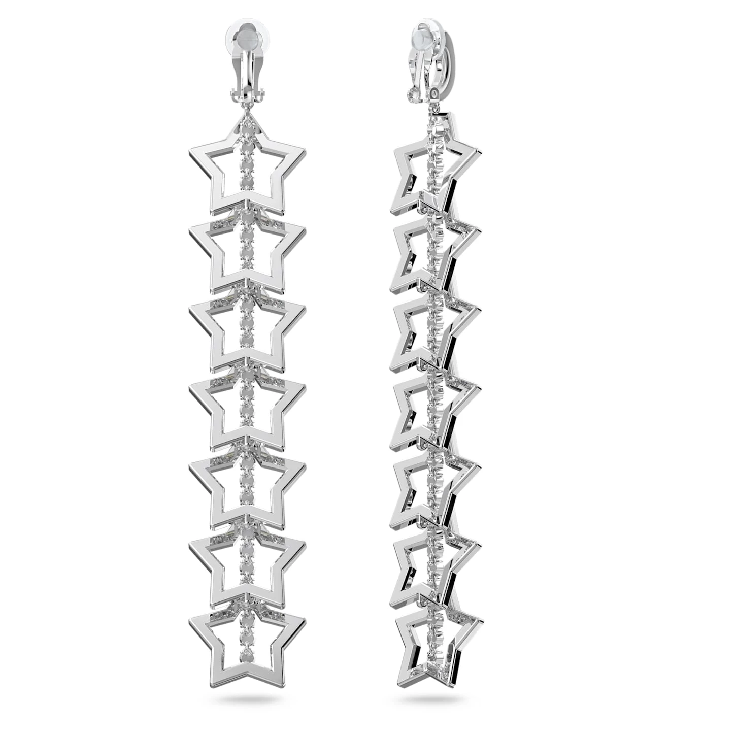 Swarovski Stella Clip Earrings Star, Long, White, Rhodium Plated