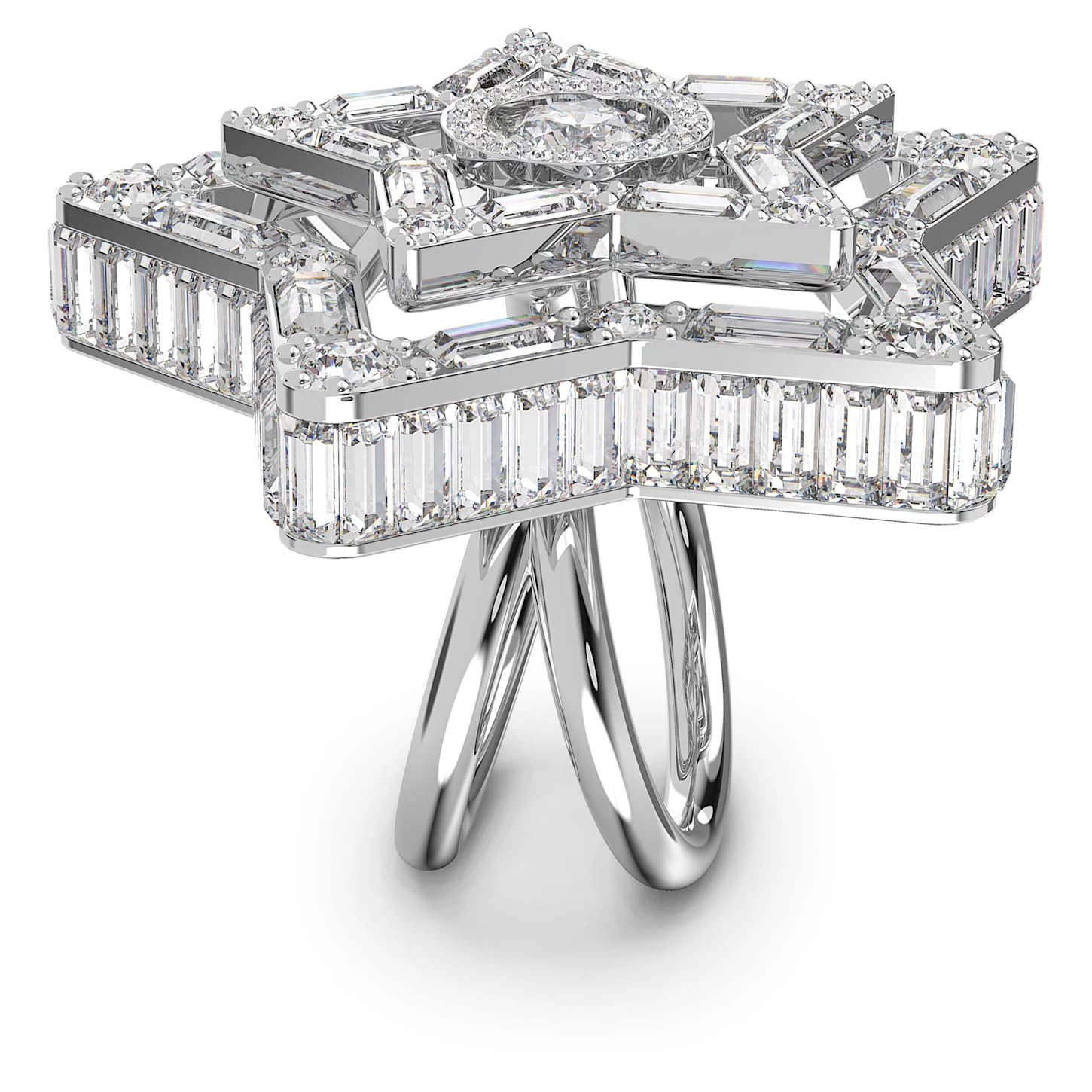 Swarovski Stella Cocktail Ring Mixed Cuts, Star, White, Rhodium Plated