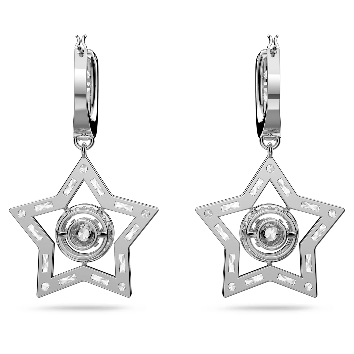 Swarovski Stella Drop Earrings Mixed Cuts, Star, White, Rhodium Plated