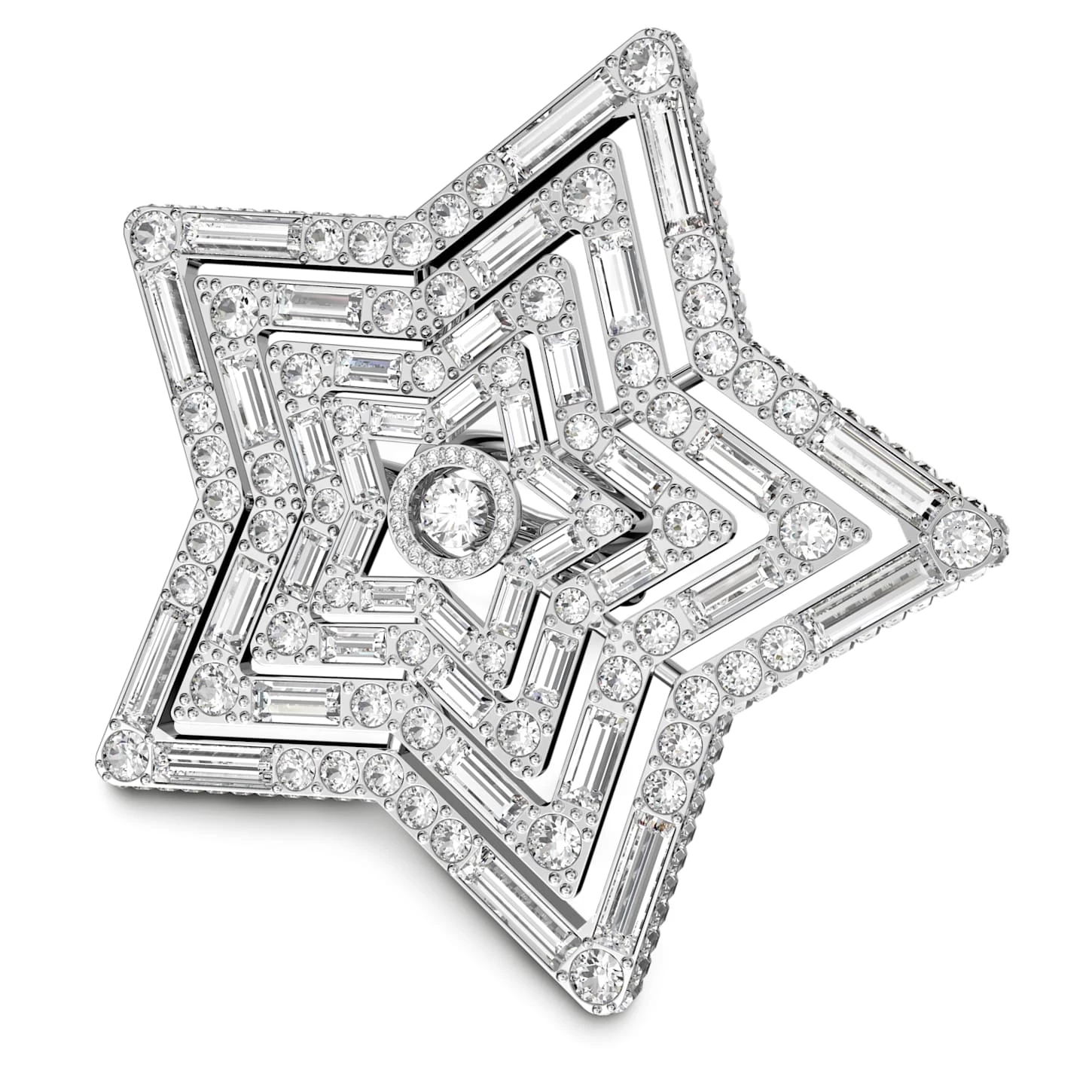 Swarovski Stella Ring Mixed Cuts, Star, Large, White, Rhodium Plated