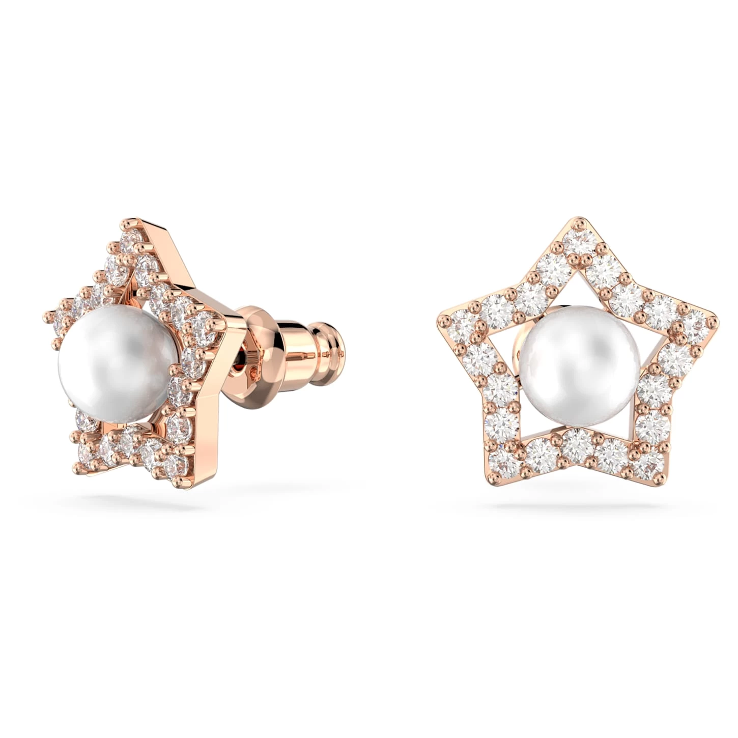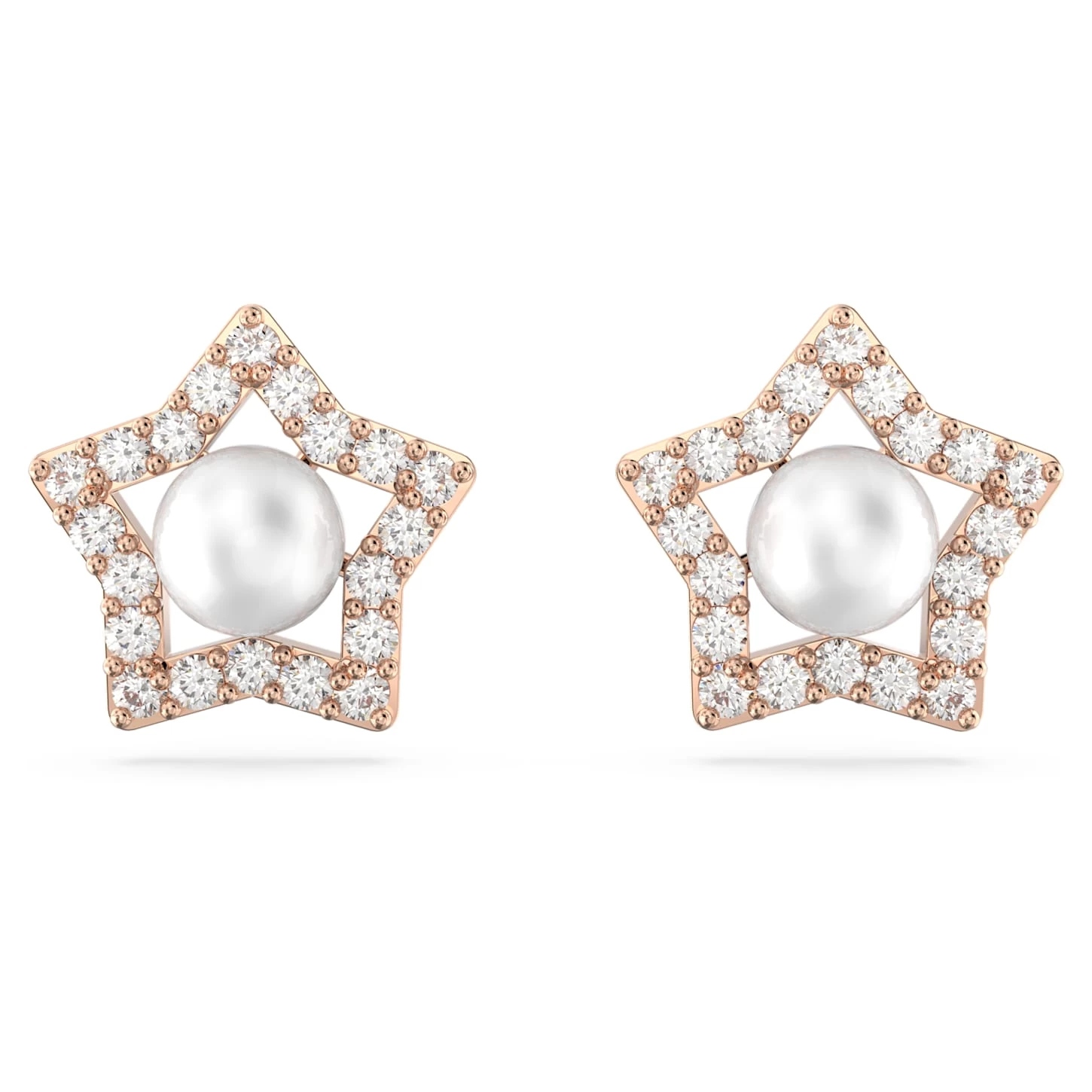 Swarovski Stella Stud Earrings Round Cut, Star, White, Rose Gold-tone Plated