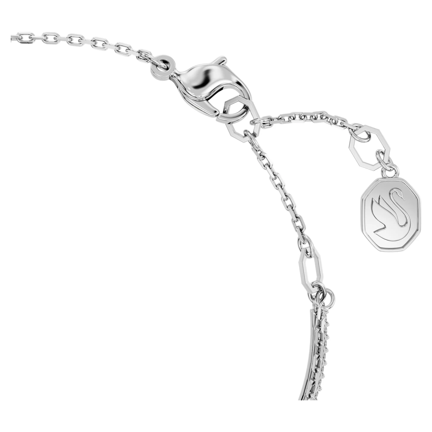 Enjoy two styles in one with this fascinating Stilla bangle. The rhodium plated design features a solid band embellished with clear crystals and a clear stone at the center, while the soft chain holds a rectangular-shaped Swarovski Zirconia in blue. Both stones are surrounded by clear square-cut crystals on the sides for added radiance. The piece has a lobster closure with an elongation for an adjustable fit. Inspired by drops of light, this beautiful bangle is the epitome of understated glamour.
