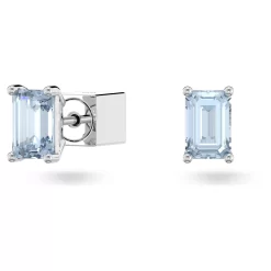Swarovski Stilla Stud Earrings Octagon Cut, Blue, Rhodium Plated