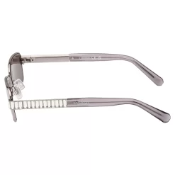 Precision-cut engineering meets timeless design in these silver-tone sunglasses inspired by the Matrix family. Featuring mirror-effect lenses, crystal-studded embellishment, and transparent gray temple tip, this versatile design is a fast-track to effortless chic.