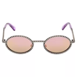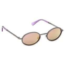 Prepare to mesmerize with these sleek yet eye-catching sunglasses. Featuring Swarovski’s signature pavĂ© technique in a black diamond hue, this pair has a gunmetal frame complete with violet temple tips, plus gray lenses with a pink mirror effect. Wear yours day or night, anything goes. These sunglasses are inspired by the Millenia Family.