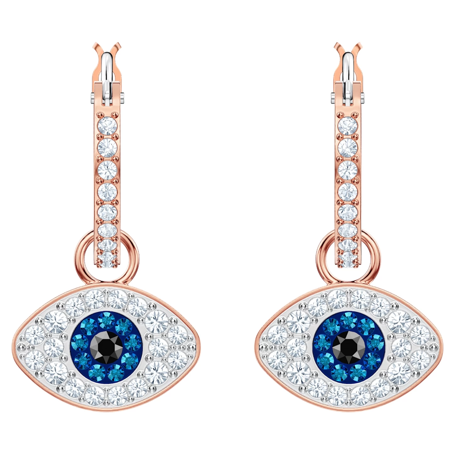 Swarovski Symbolic Hoop Earrings Evil Eye, Blue, Rose Gold-tone Plated
