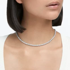 Taking its inspiration from Swarovski’s bestselling Tennis bracelet, this rhodium plated all-around necklace sparkles with gorgeous stones. Easy to mix and match, it offers simple and delicate elegance. A perfect gift.