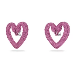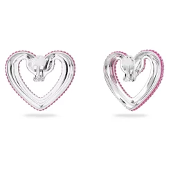 Swarovski Una Clip Earrings Heart, Large, Pink, Rhodium Plated