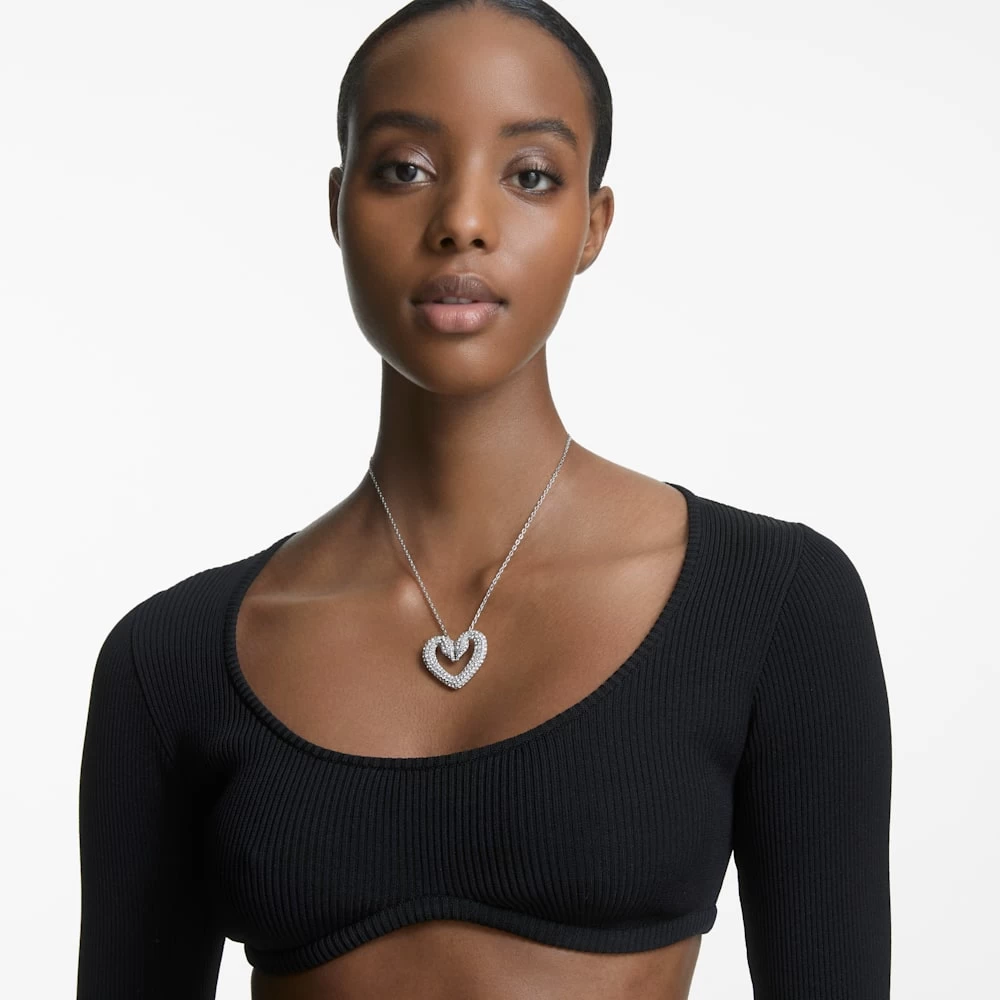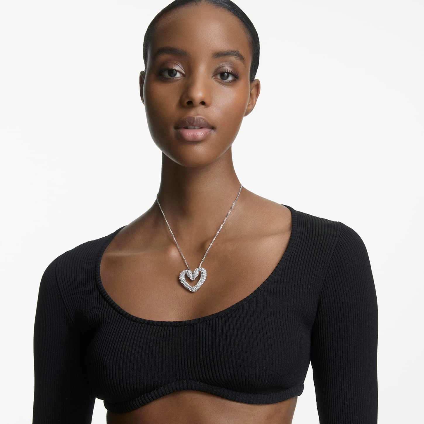 Swarovski Una Pendant Heart, Large, White, Rhodium Plated