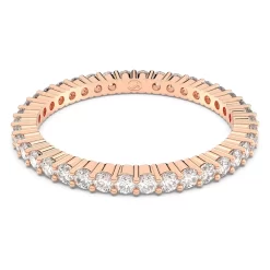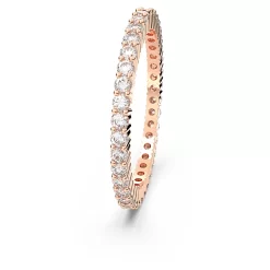 This Vittore ring is ideal for a subtle touch of glitter. It combines the warm pairing of clear round stones with rose gold-tone plating, giving you a look that is fiery and luxurious. Designed to shine on all sides, you can stack this jewelry with other styles, such as an eye-catching cocktail ring for an effective contrast.