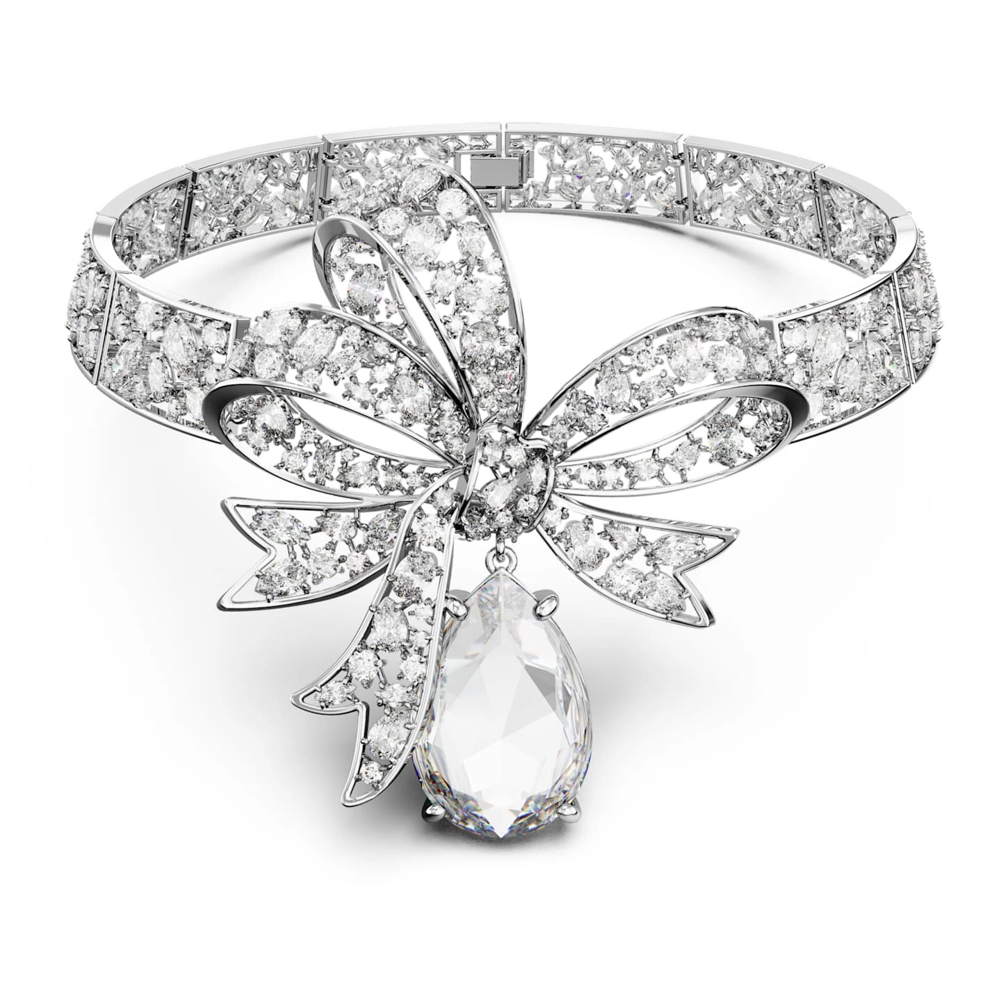 Swarovski Volta Choker Bow, White, Rhodium Plated
