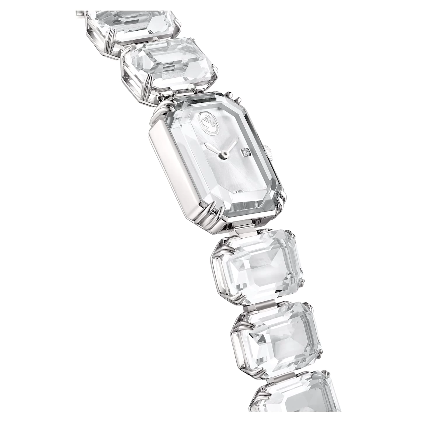 Inspired by the Millenia family, this eye-catching bracelet watch will elevate your everyday look. Expertly crafted from a row of clear octagon-cut crystals, it features a sapphire glass centerpiece and a stainless steel finish. It is water resistant to 50m. An elegant choice for solo styling or layering.